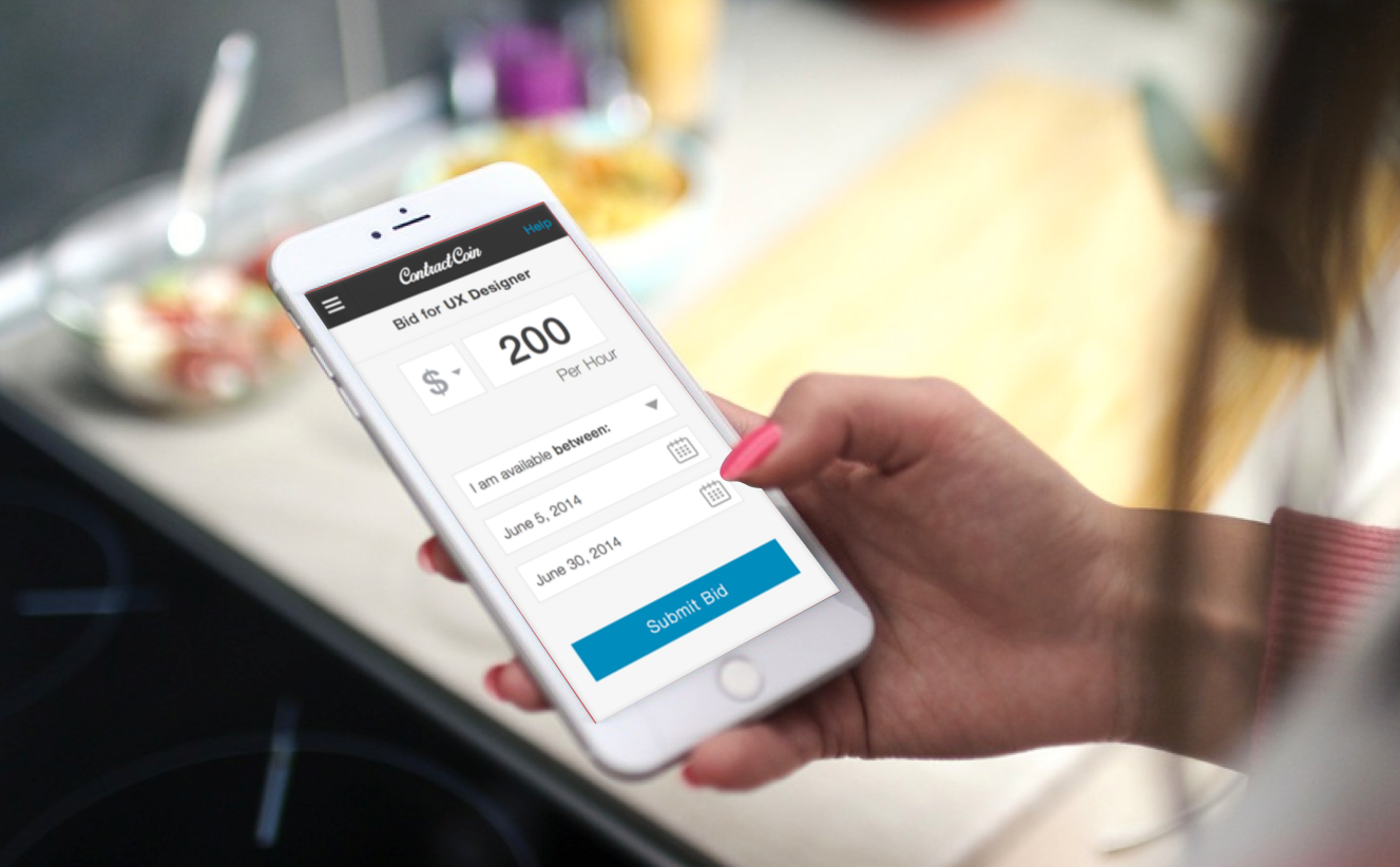 ContractCoin is a mobile application that empowers freelancers, contractors, and consultants to earn their true market rate by providing a double-blind negotiation system. In addition, the backend payment system is based on Bitcoin, so employers can hire from anywhere in the world without the hassle of expensive transaction and currency exchange fees, which can often be as high as 20%. I teamed up with Adam Terwilliger, a data scientist, engineer, and Bitcoin expert who wrote the amazing negotiation algorithm, as well as designed the backend system infrastructure. I was the product leader and designer on this project, responsible for everything from developing the concept from a business case, user research, user flows, wireframes, visual design, branding, prototyping, and a video demo.